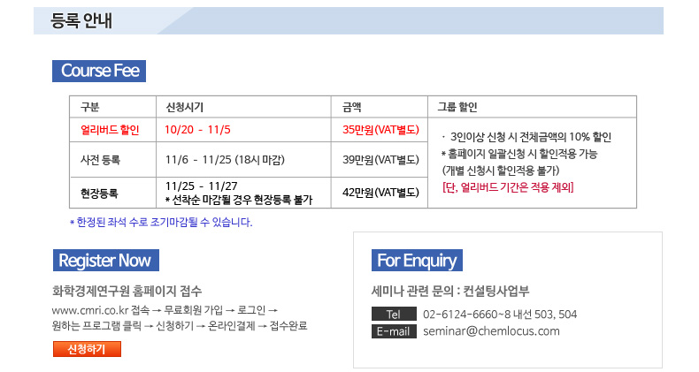 ▷ 신청문의: 세미나팀 ☎ 02-6124-6660~8 내선504 seminar@chemlocus.com