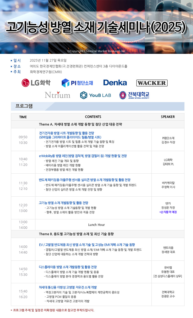 다가오는 2025년 11월 27일 고기능성 방열 소재 기술세미나를 개최합니다.