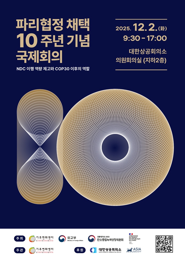 12월 2일(화), 대한상공회의소 의원회의실에서 「파리협정 채택 10주년 기념 국제회의」를 개최합니다.