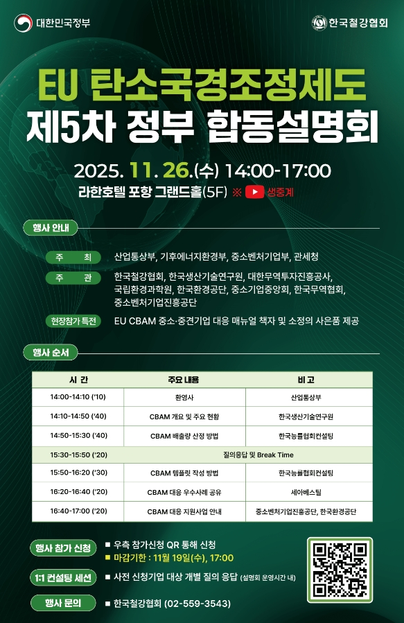 EU 탄소국경조정제도 제5차 정부 합동설명회를 아래와 같이 개최합니다. 많은 관심과 참여 부탁드립니다.